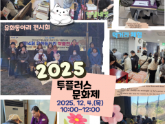 장애인 늘푸른 대학의 졸업식을 맞이하여 장애인과 비장애인의 공동체 의식강화를 위한 투플러스 문화제 행사를 실시하였습니다. 우리나라 대표 분식인 ‘매콤 달콤 국물 떡볶이’, ‘ 얼큰 담백 어묵꼬치’, ‘달콤 바싹한 맛난 팝콘’을 복지관 이용자들과 함께 조리하여 나누고 김해시보건소와 조은금강병원이 함께하는 건강체험관을 통해 다양한 건강 상식에 대해서도 알게되었습니다. 캘리그라피 체험과 타로체험, 인생네컷 체험을 통해 정서를 환기시키고 유화동아리 미술전시회를 통해 예술적 감각도 자극해보았습니다.